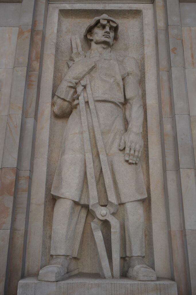 Også på denne centrale historiske plads i Warszawa, hvor demokratiet blev født, ønskede Stalin at sit store fingeraftryk på. For her skulle socialistisk realisme danne befolkningen om en ny fremtid.