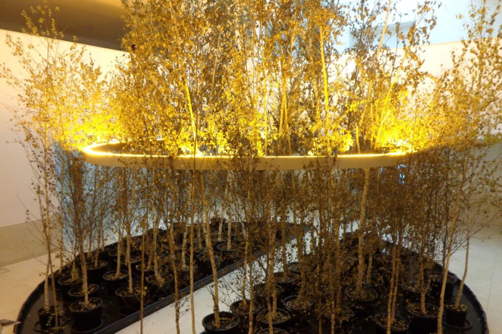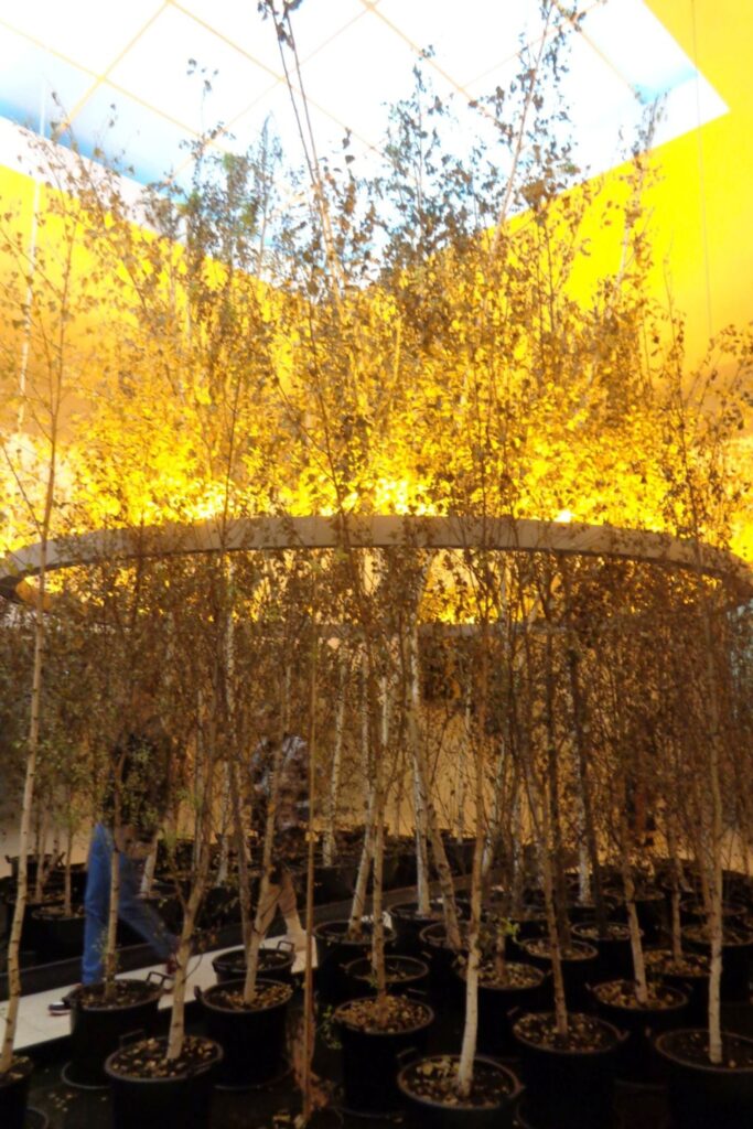 Gul Skov kombinerer dermed de naturlige elementer, lys og bevægelse, for at udfordre de besøgendes opfattelse af rum, natur og kunst.