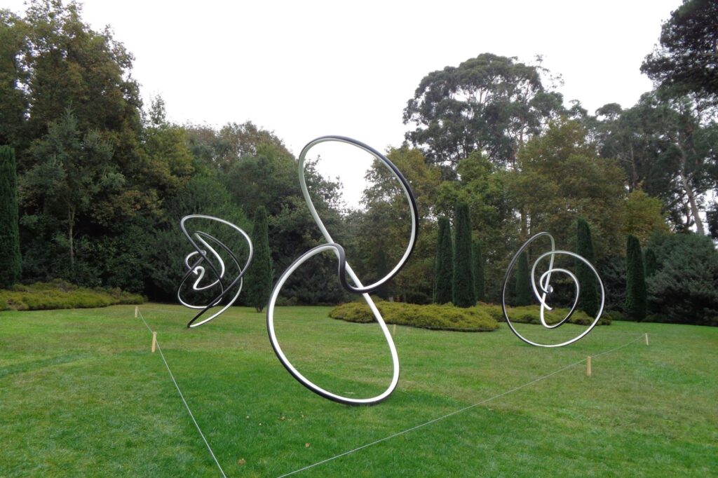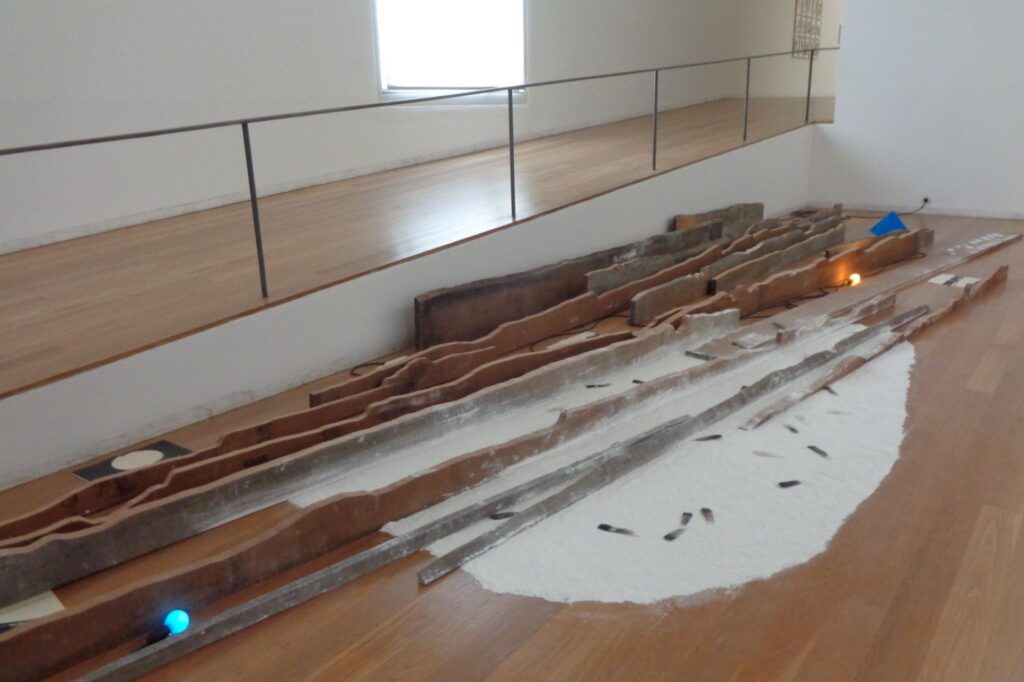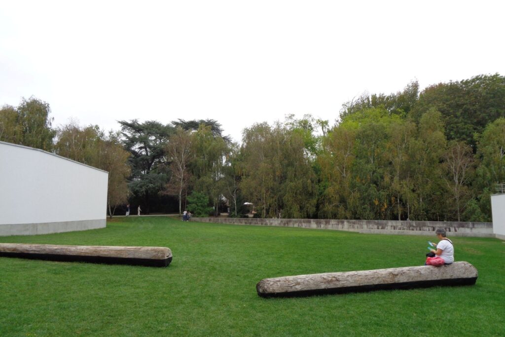 Udenfor, kan man se værkerne “Arktisk træhorisont”, som består af træstammer, og “Menneskelig tid er bevægelse (vinter, forår, sommer)” fra 2019. Det er tre nye spiralskulpturer i rustfrit stål skabt specielt til udstillingen.
