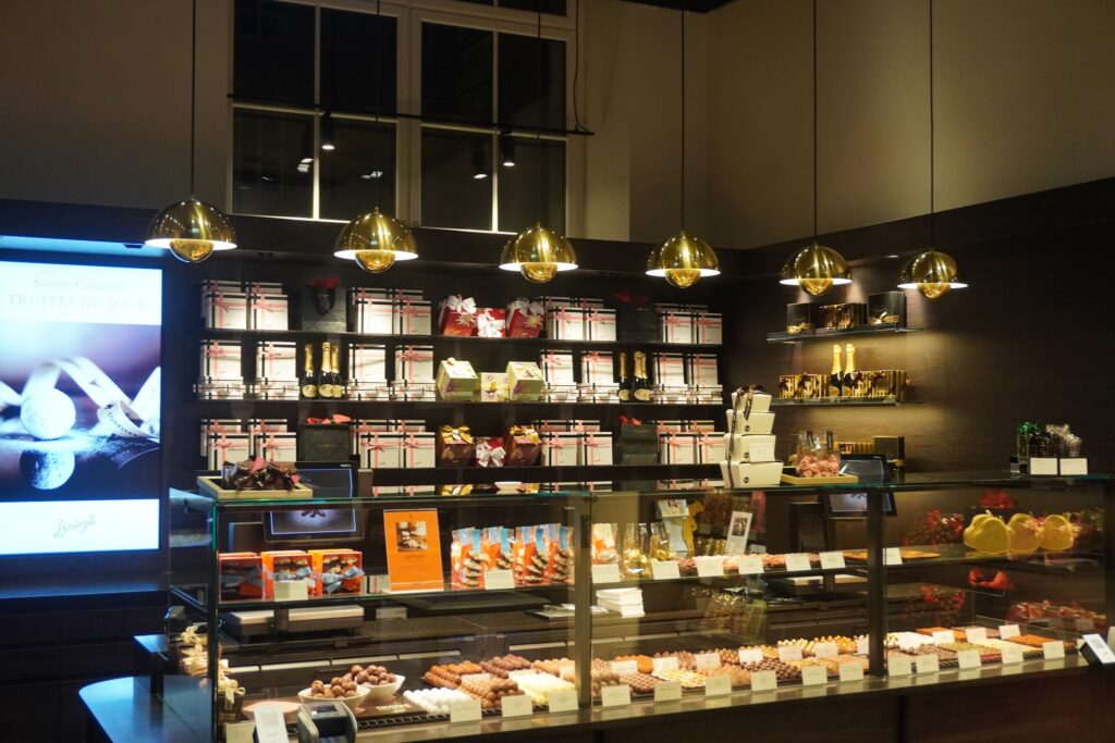 Rundt omkring i byen, kan man også i nogle af chokoladebutikkerne, se nogle af hans lamper.