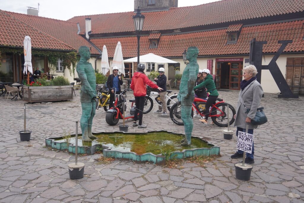 Andetsteds i Prags centrum kan man i gårdhaven til det tilstødende museum for Franz Kafka se skulpturen Pis. Her står to mænd som hver især pisser ned i et vandbassin hvis omkransende form er lig med Tjekkiets grænser dets nabolande. Dette funderede nogle tyske skkoleelever sig over, for hvor er det lige på skulpturen at grænserne er til Tyskland en dag jeg kiggede forbi. På et andet tidspunkt så jeg en gruppe tyrkiske mandlige studerende som alle trak deres bukser lidt ned, og som så at sige nærmest pissede med. Og en sen nattetime, hvor jeg var sammen med en dansk kvinde som besøgte mig, så tog hun fat i en af lemmene, og ville have et billede af det!