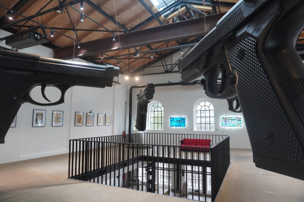 GUNS er et af de første værker som David Černý lavede, tilbage i 1994. Selvom murens fald i Berlin signalerede en ny tro på at Europa igen kunne fungere som brødre og søstre igen, efter at have været adskilt af et jerntæppe igennem flere årtier, så var borgerkrigen i Eks-Jugoslavien et synligt bevis på at der stadig var mange uforløste konflikter som kunne eksplodere når og hvor som helst.