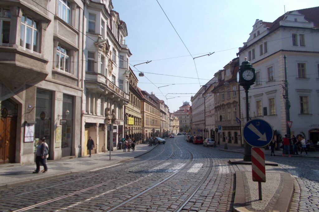 I Den Gamle By i Prag kendt for sine mange smalle, krogede veje, hvor du fæler byen.