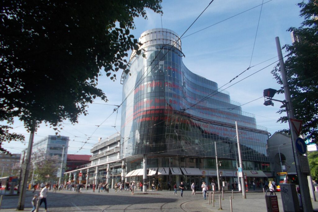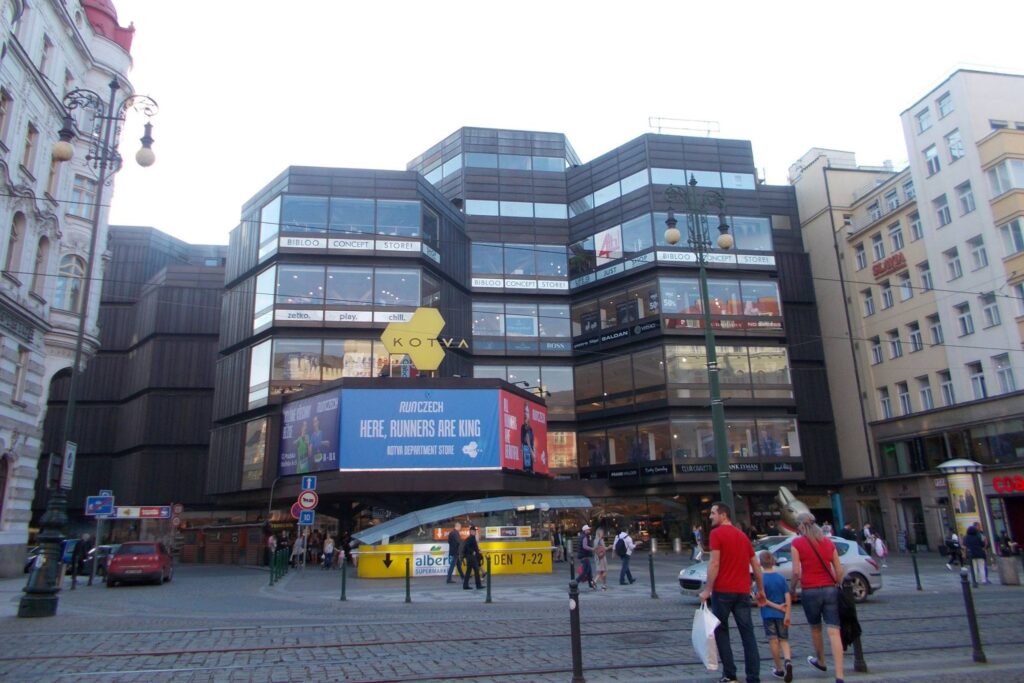 Ligeover for Palladium ligger Kotva, som er et enestående eksempel på brutalistisk arkitektur i Prag.