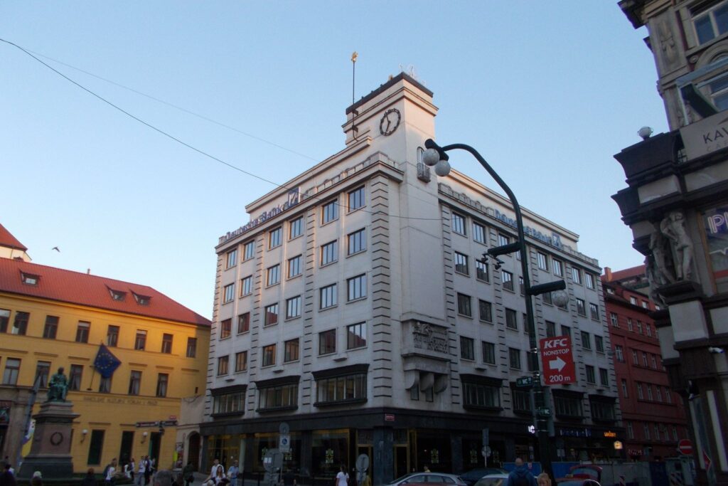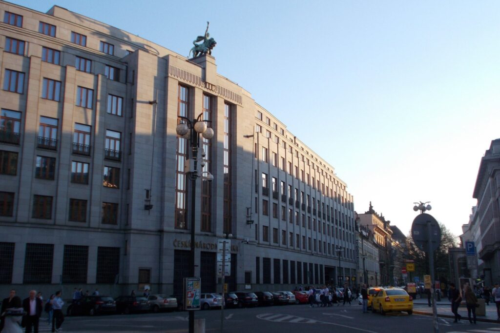 Den Tjekkiske Nationalbank, som er opført i Art Deco stil mellem 1935-1942, er tegnet af František Roith.