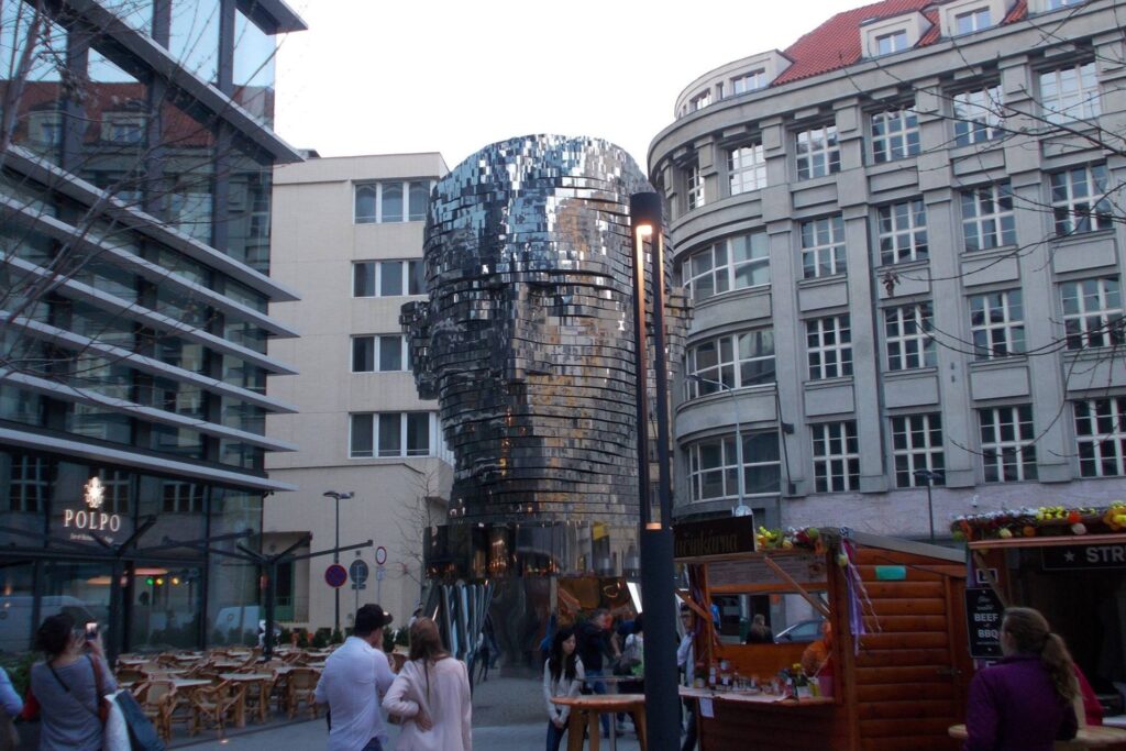 Det er også her at du kan finde en stor skulptur af Franz Kafka som er udformet af kunstneren David Černý. Her kan de forbipasserende se et monument hvori de forskellige lag roterer.