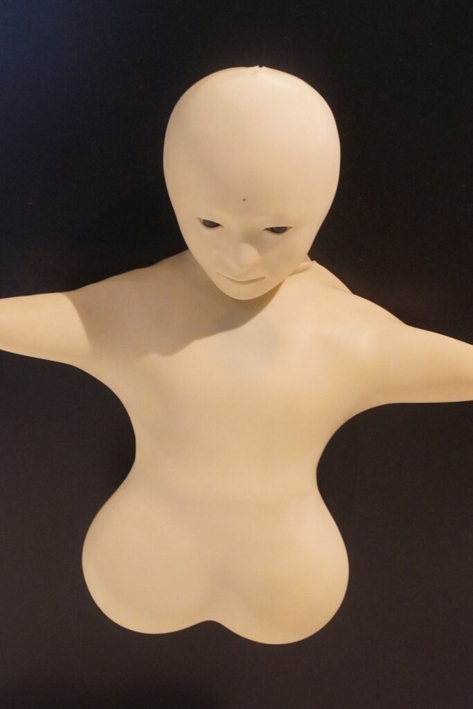 Omsorgsrobotter bliver også vist i udstillingen. Telenoid R1 robotten er udviklet af Hiroshi Ishiguro og hans forskerteam ved Osaka Universitetet i Japan. Robotten er en såkaldt telepresence robot, som kan være en nærværende repræsentant for et menneske, som ikke er i stand til at være to steder på samme tid. På en alderdomshjem kan den ældre beboer eksempelvis på denne måde mærke tilstedeværelsen af sin søn.