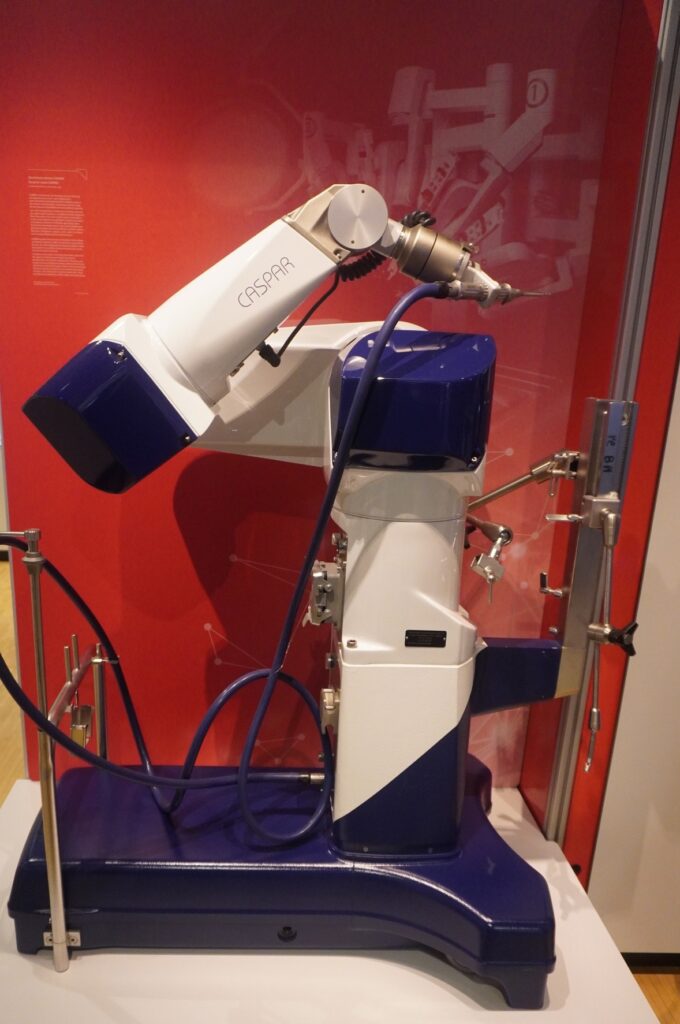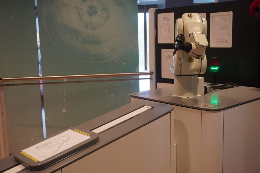 Robothespian fra den britiske robotvirksomhed Engineered Arts er den første robot du møder i Heinz Nixdorf MuseumsForum. Den kan inteagere med dig, hvis du taler til den.