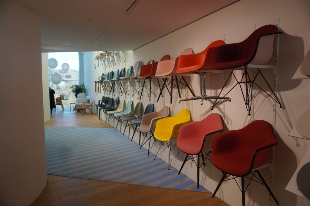 Besøget hos Vitra blev afsluttet i deres bygning hvor de præsenterer deres produkter til offentligheden. Her kunne man ved selvsyn se at deres senste udgivelser ikke i samme grad lever op til design klassikerne fra tresserne og halvfjerdserne.