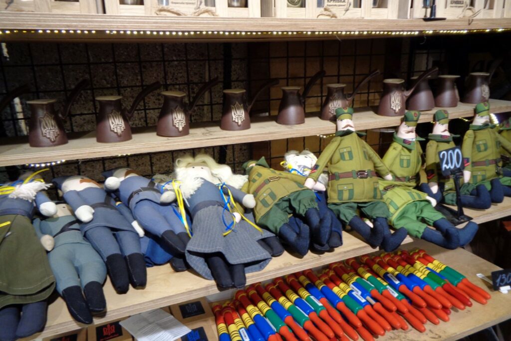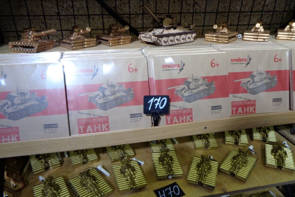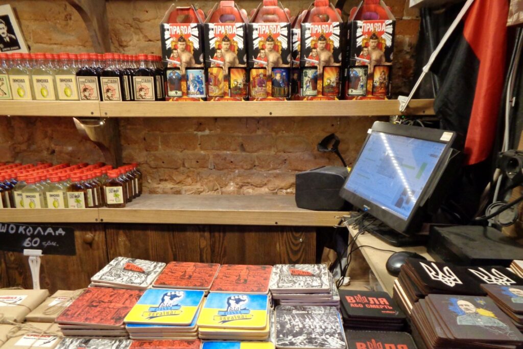 I Kryivka, som er en kombineret restaurant, som serverer traditionel ukrainsk mad, og butik, kan man købe alle mulige genstande, som handler om krig.
