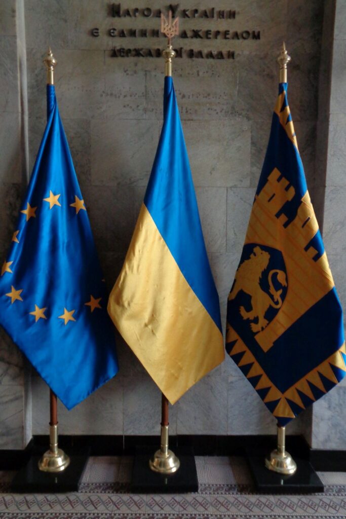 Den 25. juni 1848 blev to blå og gule bannere af ukendte gerningsmænd ophængt på rådhuset. Dette er den første dokumenterede brug af Ukraines nuværende gul-blå flag.,